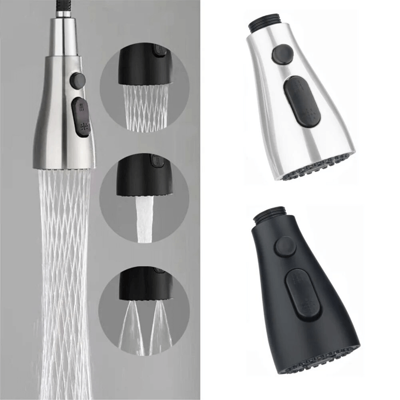 Der Wasserhahn ist eine neue, universelle, herausziehbare Ersatzbrause, die für eine einfache Installation an Ihrer Küchenarmatur entwickelt wurde. Mit seinem schlanken, ergonomischen Design und drei wassersparenden Sprühoptionen.