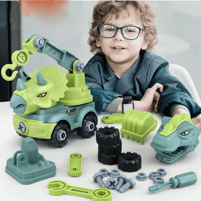 Mit der zweiseitigen Trägheitsenergieübertragung für ein intensives Spielerlebnis und den kostenlosen Demontagewerkzeugen zur Förderung der praktischen Fähigkeiten kann Ihr Kind eine Welt der Kreativität durch verschiedene Dinosaurier- und Fahrzeugkombinationen erkunden.