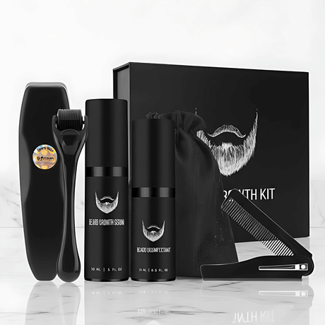 BeardForge - Bartwuchs-Set für Männer mit Roller, Serum, Desinfektionsspray & Kamm