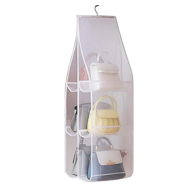 Unser Handtaschen-Organizer hat Öffnungen, die es leicht machen, den Inhalt zu identifizieren. Mit einem schnellen Blick können Sie die gewünschte Handtasche oder das gewünschte Accessoire finden, ohne den Organizer bewegen oder öffnen zu müssen.