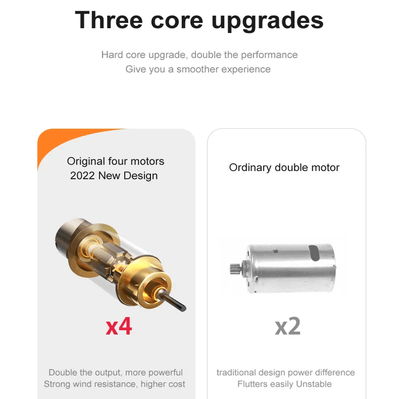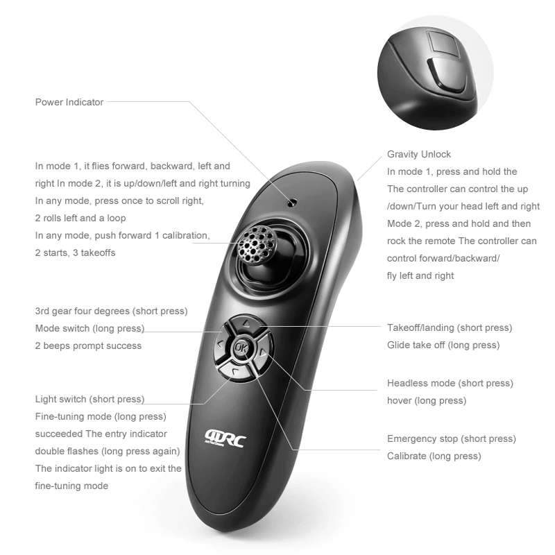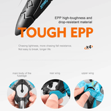 Vielseitige 2,4-GHz-4-Kanal-Steuerung - Erleben Sie den Nervenkitzel der 2,4-GHz-4-Kanal-Steuerung, die vier Richtungsoptionen bietet - aufsteigen, absteigen, links und rechts abbiegen. Genießen Sie Dual-Mode-Spiel, hypnotische Lichteffekte, verlängerte Akkulaufzeit, faszinierende 360°-Stunt-Rollen und fesselnden Schwebeflug.