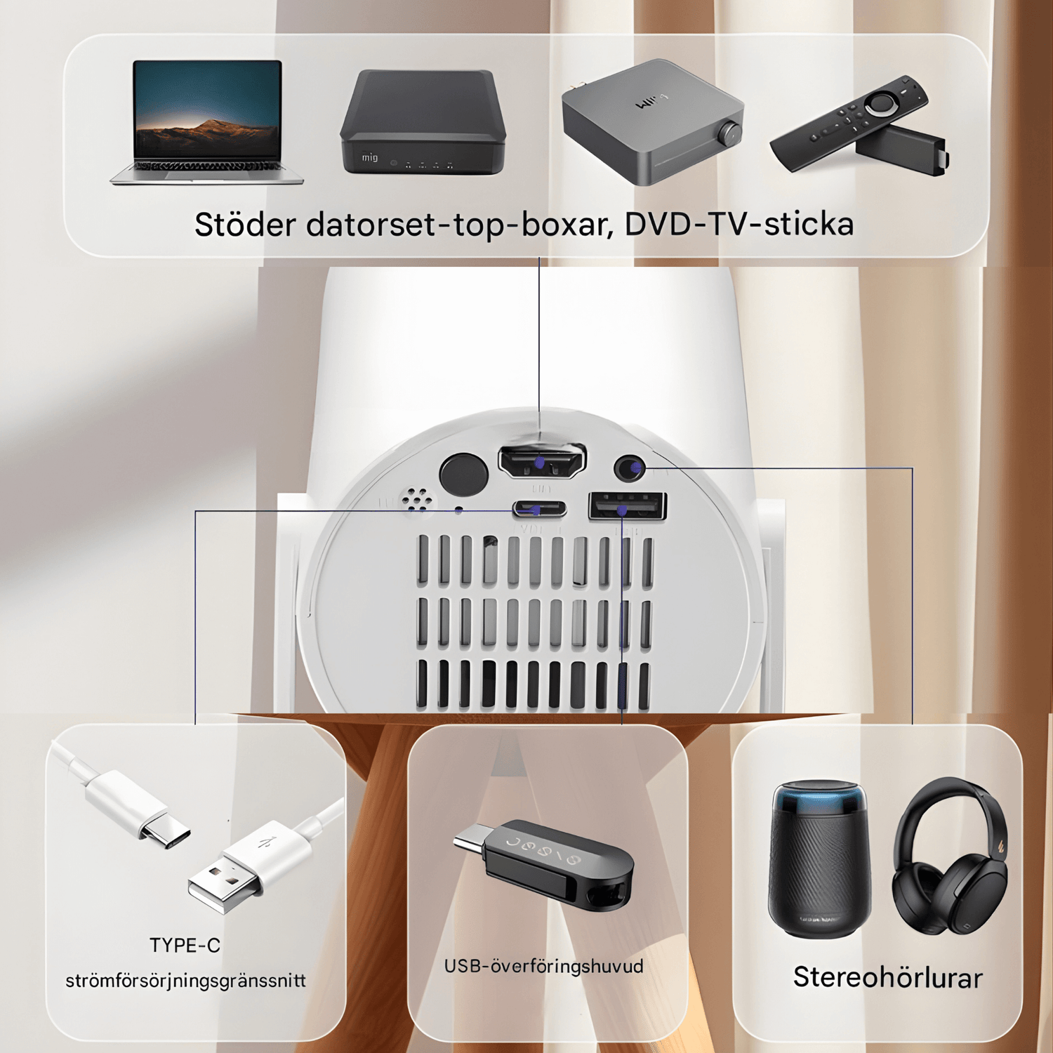 - 🖥️ Stöd för upp till 100" stor skärm – kan njuta av större visning även i små rum
