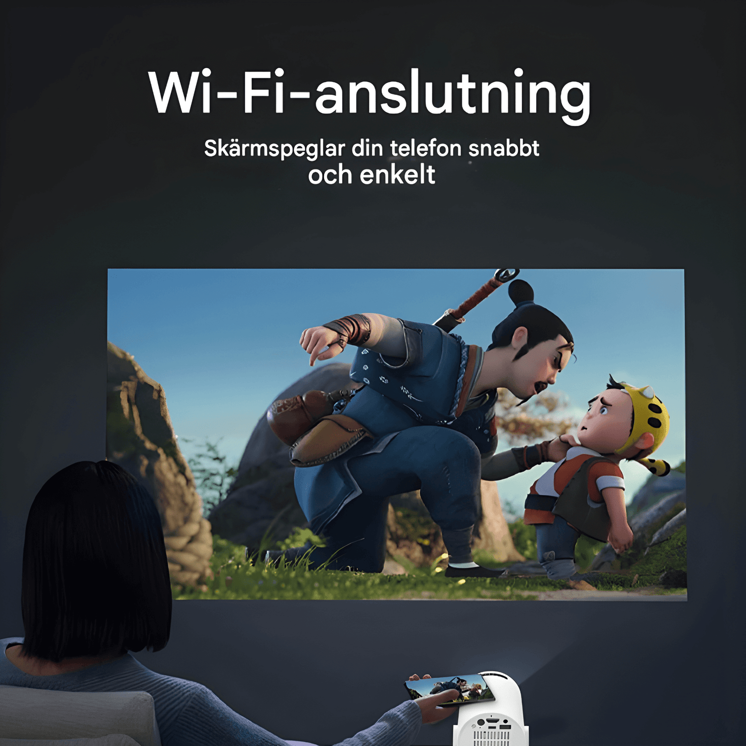 Trots sin lilla storlek kan projektorn ge en ljusstark bild med skarpa färger och högt kontrastförhållande. Den trådlösa skärm delningen gör att du kan visa innehåll direkt från mobilen, surfplattan eller datorn utan kablar, vilket kan underlätta möten, filmkvällar eller spelstunder.