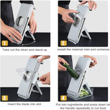 ✅ Effektiv und sicher - Entworfen mit eingebauten Klingen, um sicherzustellen, dass Sie nie Ihre Finger/Hände schneiden. Die multifunktionale Mandoline ist auch zum Hacken aller Arten von Lebensmitteln, wie Zwiebel, Kartoffel, Pilz, Gurke, Karotte, Tomate, Ingwer, Knoblauch, Käse, usw. geeignet.