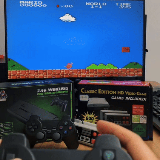 Fühlen Sie den Nervenkitzel der Vergangenheit, wenn Sie Ihr Fernsehgerät, Ihren PC oder Ihren Projektor anschließen und Ihre Lieblingsspiele in vollem 1080P HD genießen. Es ist, als wäre man wieder 10 Jahre alt, als jedes Spiel ein Abenteuer und jedes Level eine neue Herausforderung war.